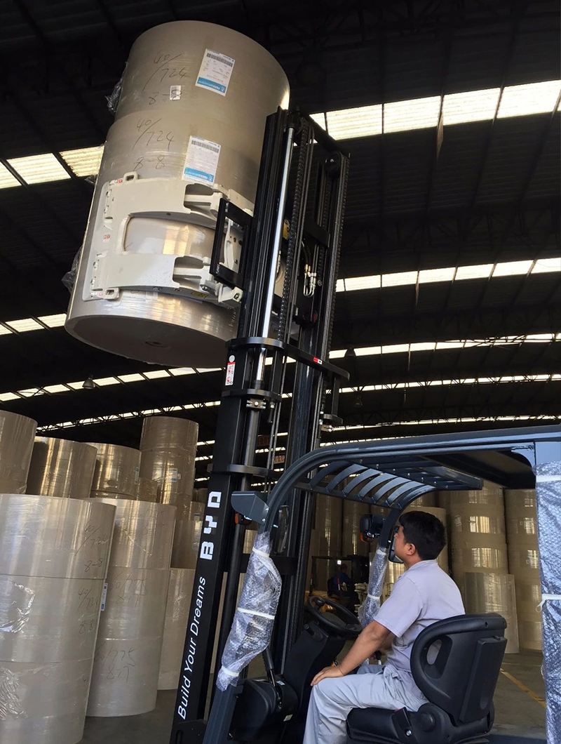 而且在造纸行业,我司经销的比亚迪电动叉车拥有出色表现,交出了令人满意的答卷。为降低叉车使用成本,满足纸厂作业需求,我们根据客户实际情况分析,充分结合客户需求和比亚迪锂电叉车优势,为客户量身定制了绿色新能源搬运解决方案。