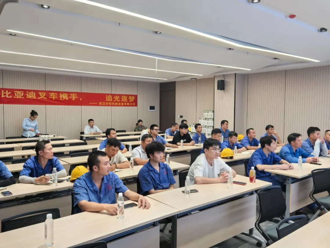 为了确保客户公司员工能够熟练操作比亚迪叉车,世恒集团总部特别派遣了售后经理前往广西,与广西公司负责人一起进行了为期一天的产品培训。培训内容包括叉车的基本操作、日常维护以及安全注意事项,确保每位员工都能在实际工作中得心应手。