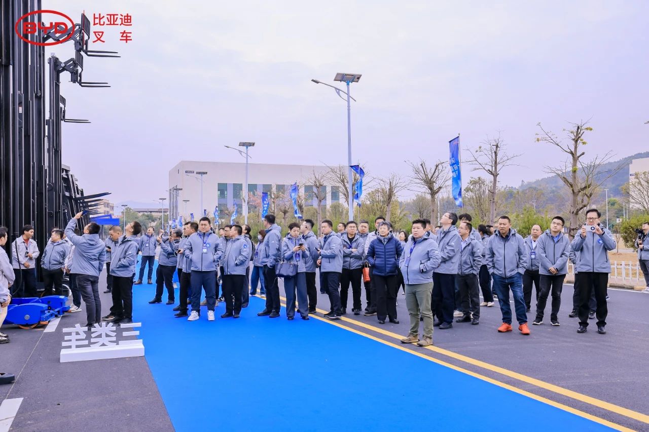 当日下午,在董事长张凯先生的带领下,各分公司负责人一同参观了比亚迪叉车韶关工业园区。现场完善的产品矩阵和详尽的介绍给大家留下了深刻的印象,进一步加深了对比亚迪叉车创新力和实力的认可。