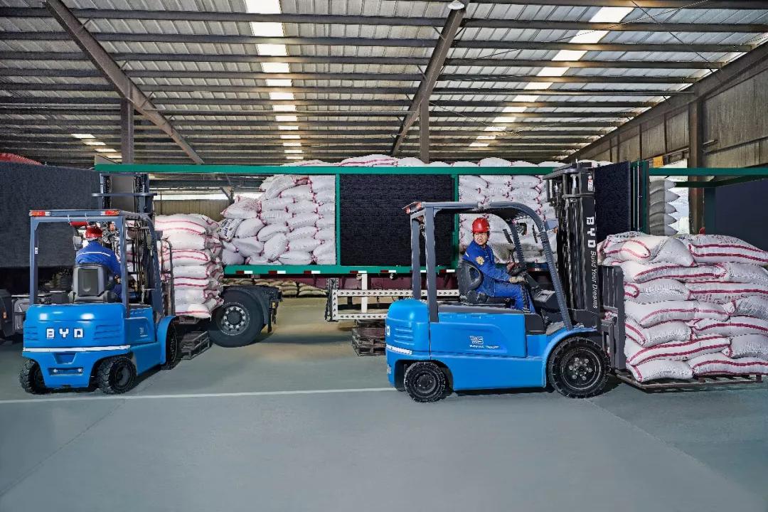 一直以来,比亚迪叉车就以拥有强劲动力的优势而广泛应用于负荷重、工况恶劣等行业,并以其优越的使用性能为客户带来不可比拟的价值。其在饲料行业的成功应用,也正演绎着比亚迪叉车的与众不同。