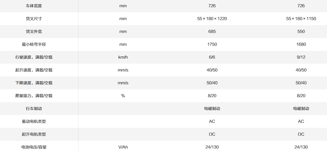 货叉规格系列化定制,满足多种叉板托盘需求;配置USB接口、5V/12V外接电源,方便实用;采用上下翻转式护栏机构,高度可定制。