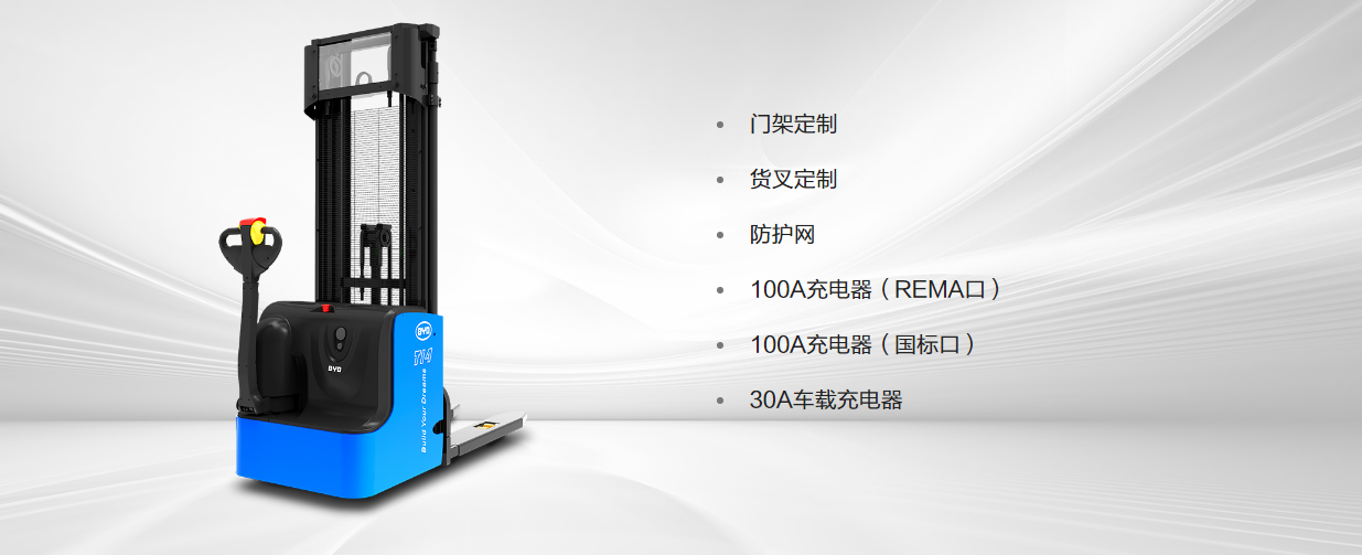 高位限速、能量再生制动、整车断电保护;加强型冲压钢电池保护盖、系列化门架选配。
