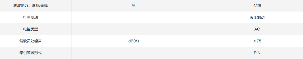 高容量电池,可满足长时间的操作需求;配备进口驱动桥、AC交流电机,完美配合液压、转向系统,确保动力的高效输出,动力强劲可媲美内燃车。